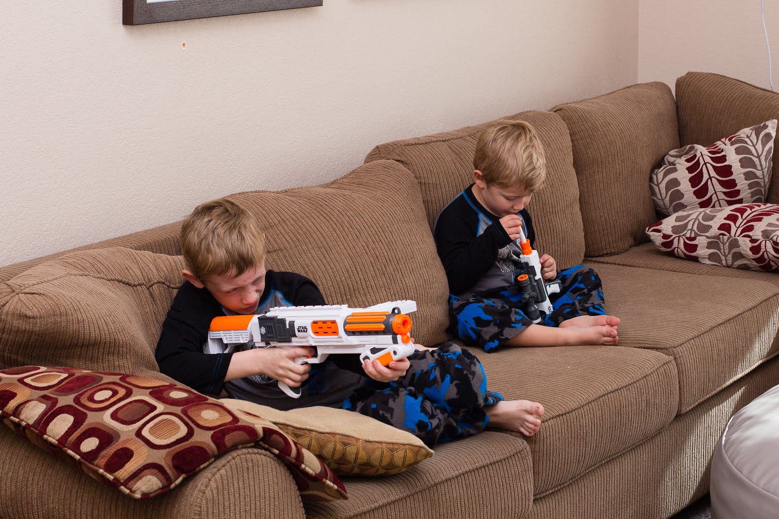 Shooting at targets they set up across the room.