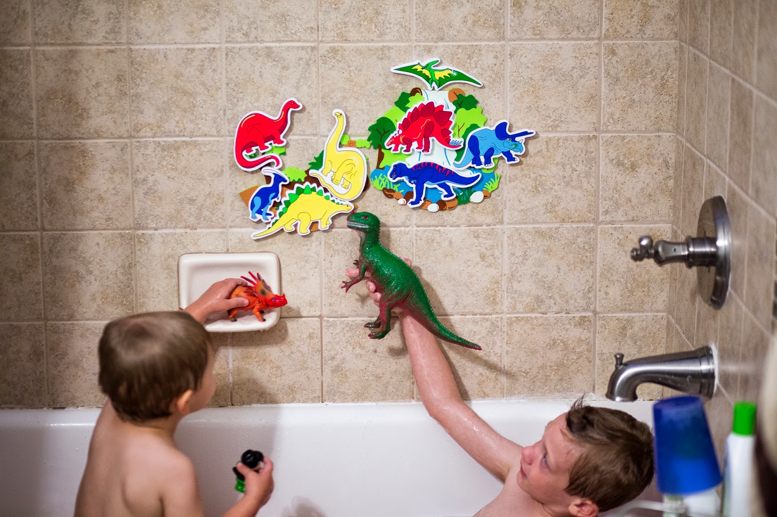 The boys are obsessed with dinosaurs right now. Yeah–we let them watch all the Jurassic Park movies and they are excited for the new movie. We’ve also been reading through a Dinosaur encyclopedia a little bit each night. Connor’s favorite is the Tyrannosaurus and Logan’s is Spinosaurus.