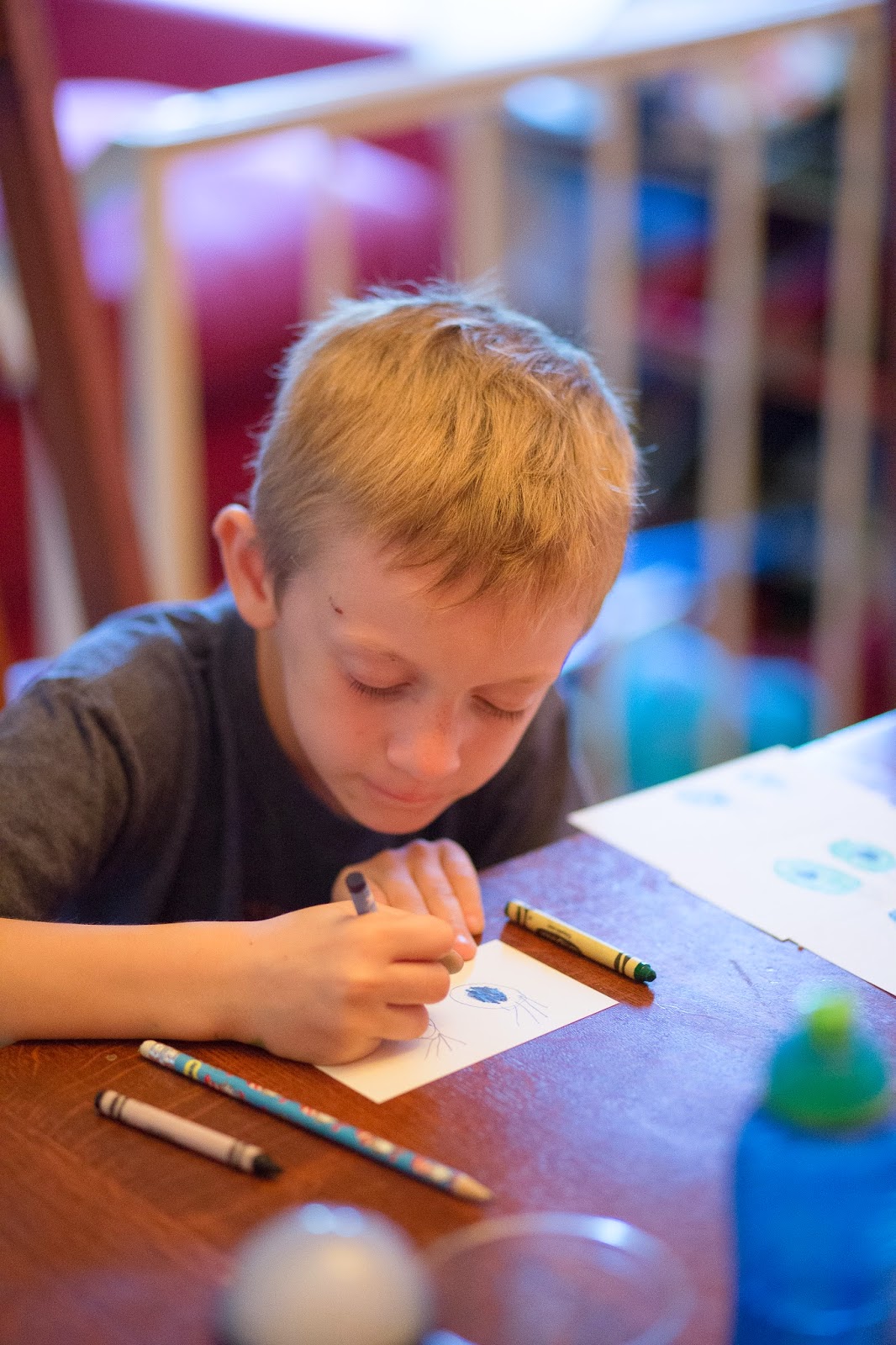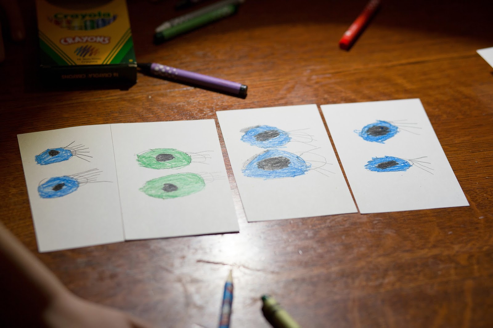 Logan had to draw the eyes of all the people in his family for a school project. I’m not sure who each blue set belongs to, but the green are mine 🙂