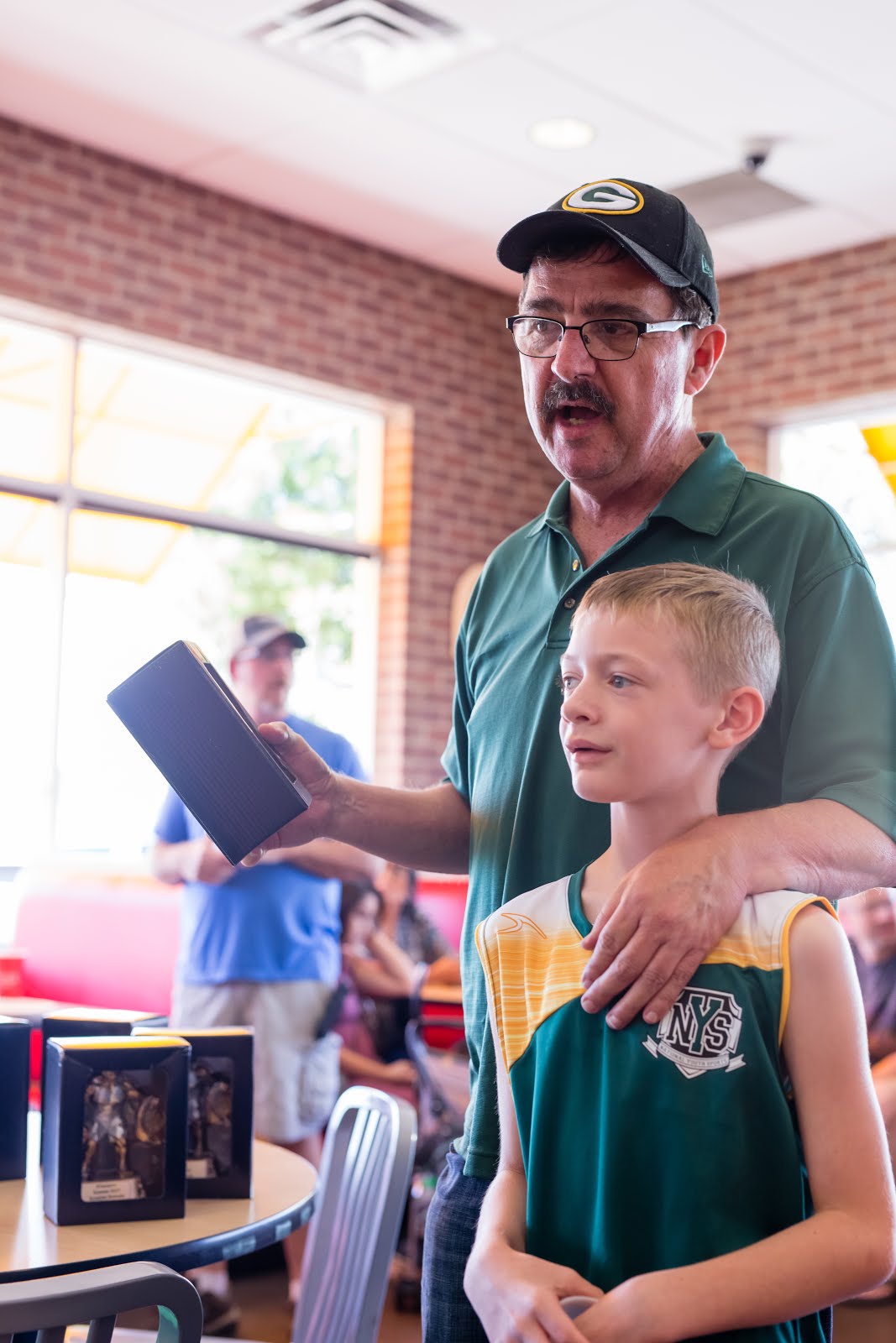 Logan getting his basketball trophy.