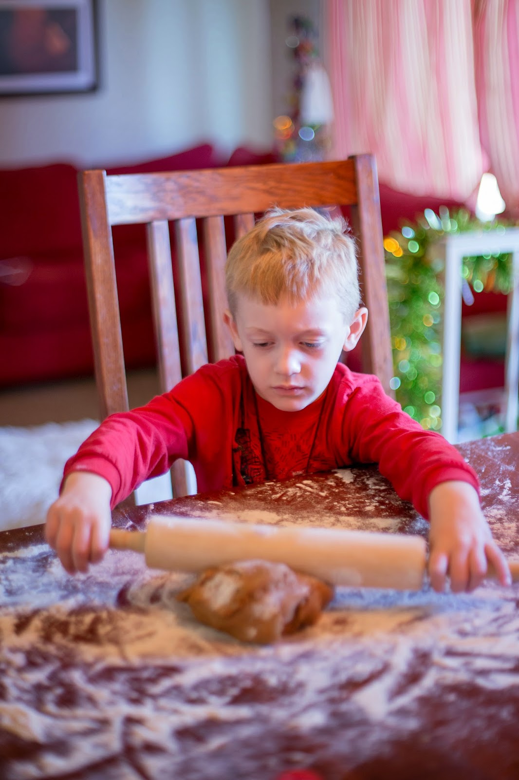 Logan rolling out the dough to make gingerbread cookies!