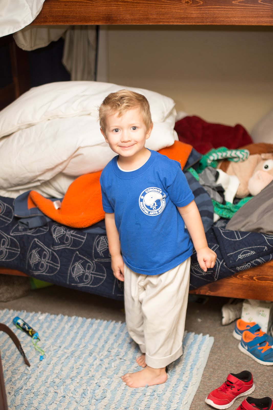 Connor busy not changing out of karate clothes!