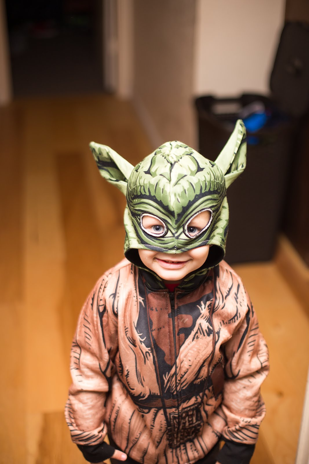 He loves Yoda and his Yoda jacket. I love those big blue eyes peeking out!