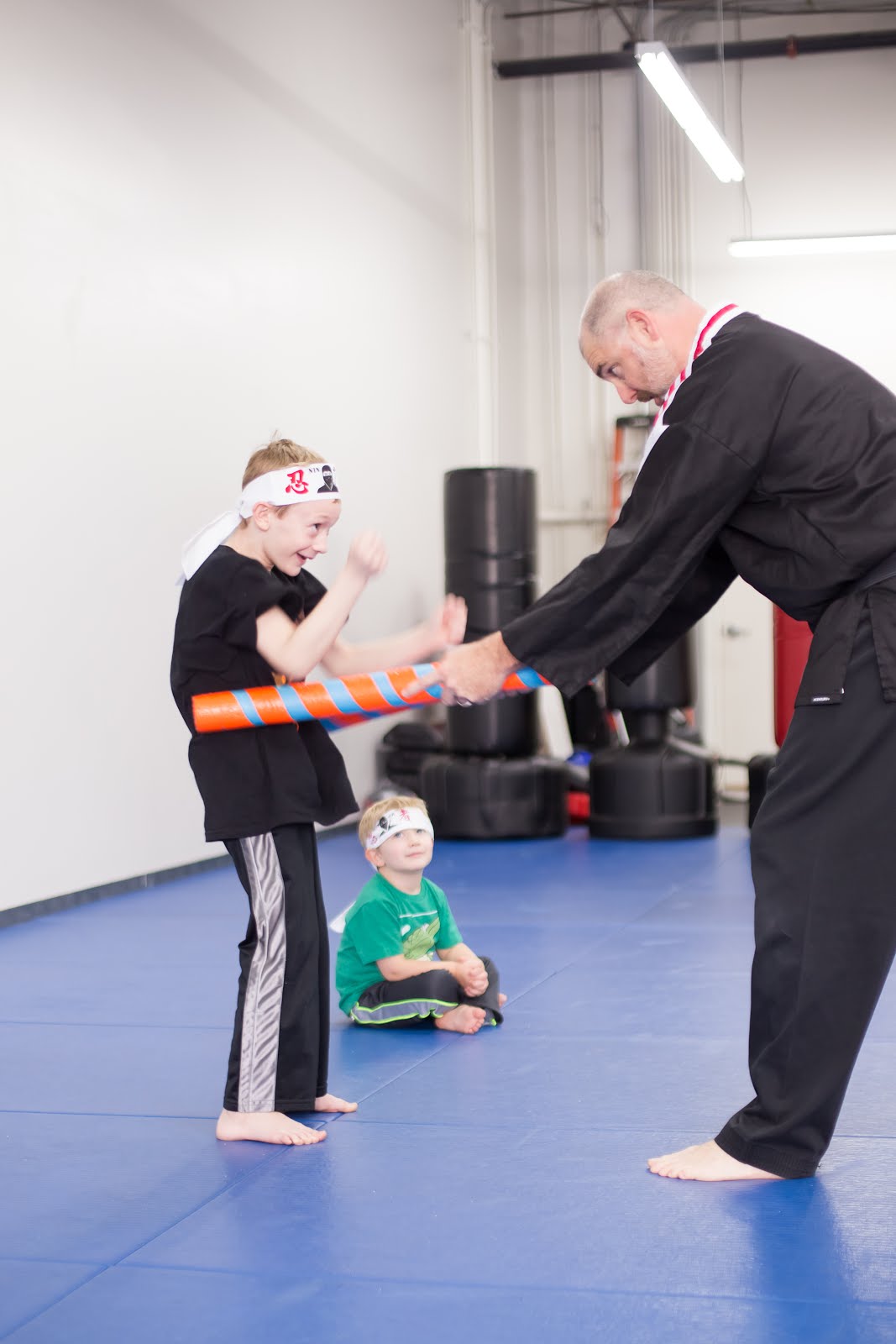 Logan blocking while Connor looks on at their Ninja birthday party!