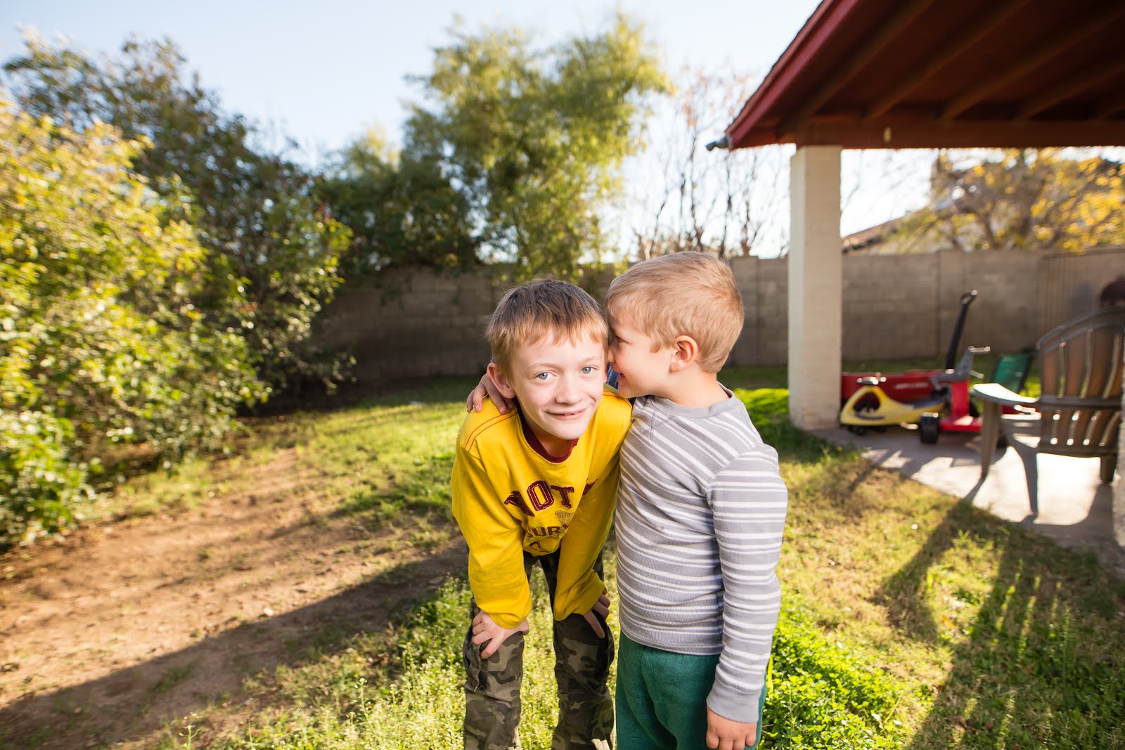 I took today off work on the kids’ last day of winter break. I got them to come outside for the daily photo and they started telling secrets, which I thought was cute. Of course, I think it was all about poop, but whatever works.