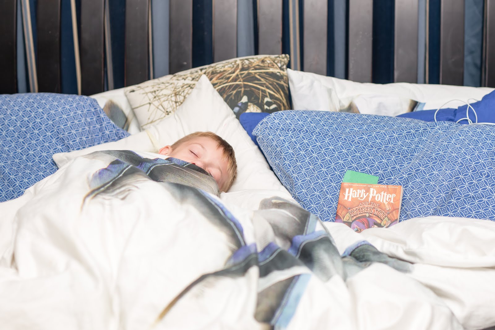 I guess he got sleepy enough from reading while waiting for me to get him to bed.