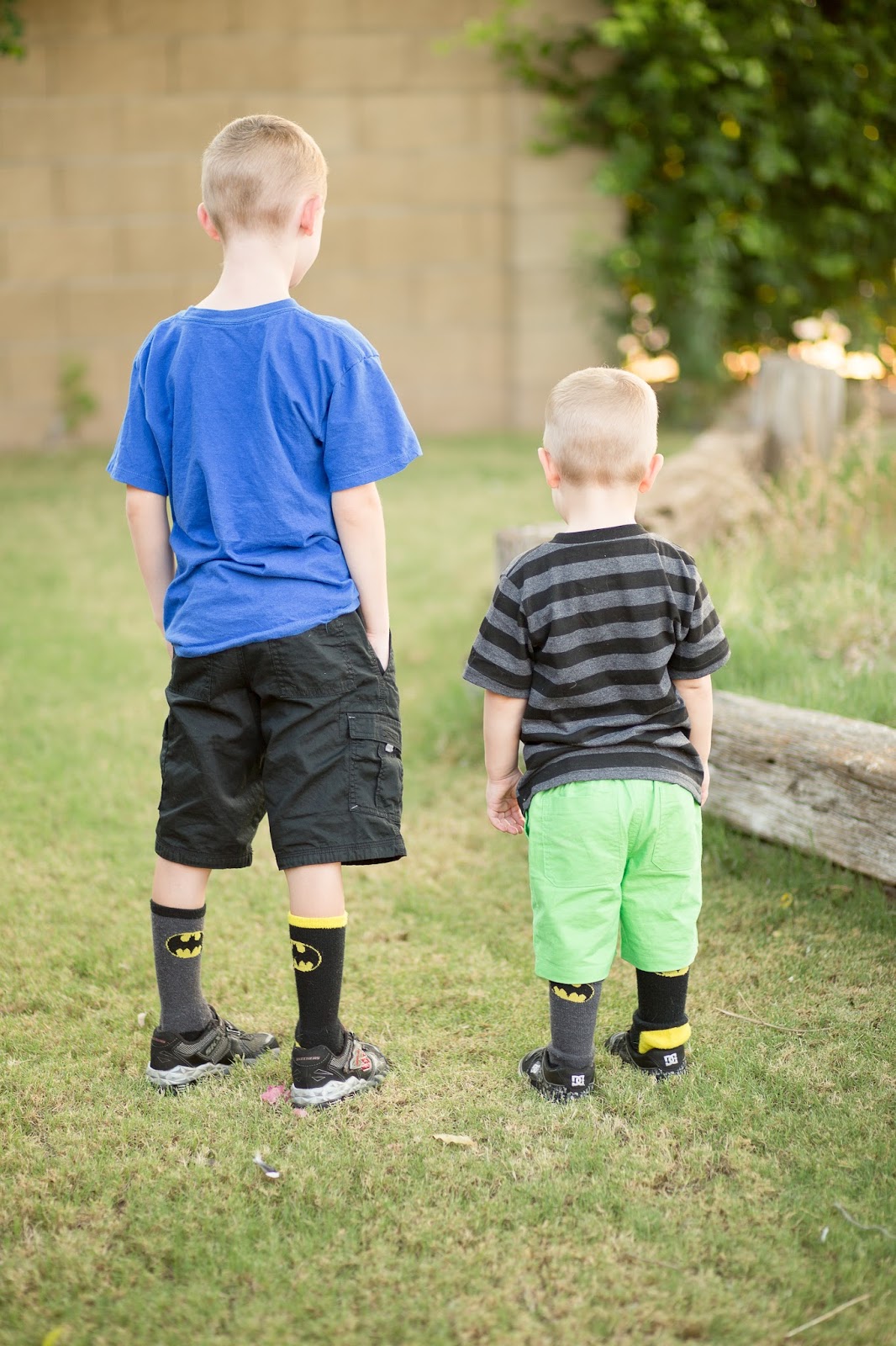 Today was crazy sock day at daycare, so we went with mix-matched Batman socks.