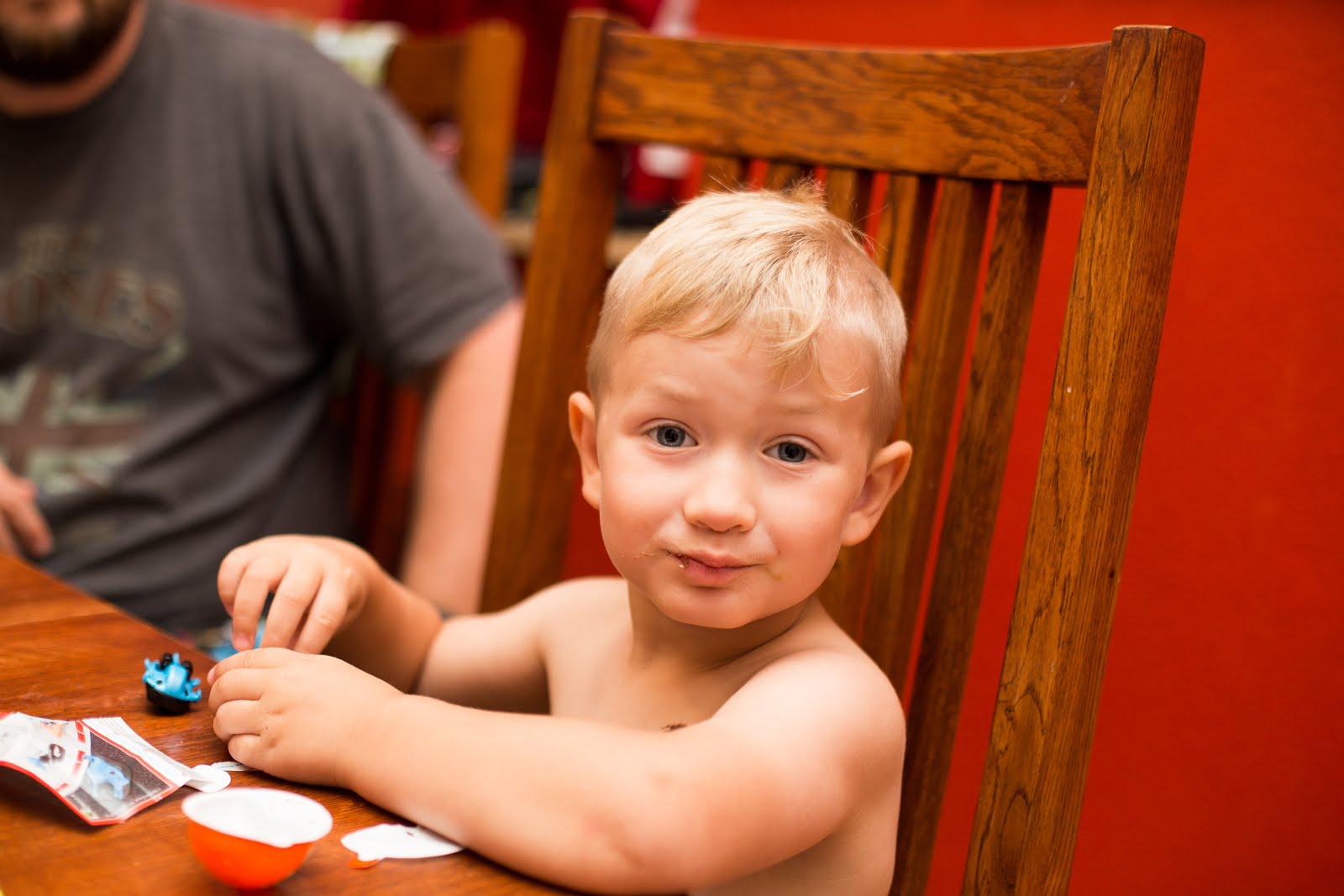 He was very good at karate today, so he got a Kinder Joy. He wants a real Kinder Surprise so bad, but they’re illegal here :(.