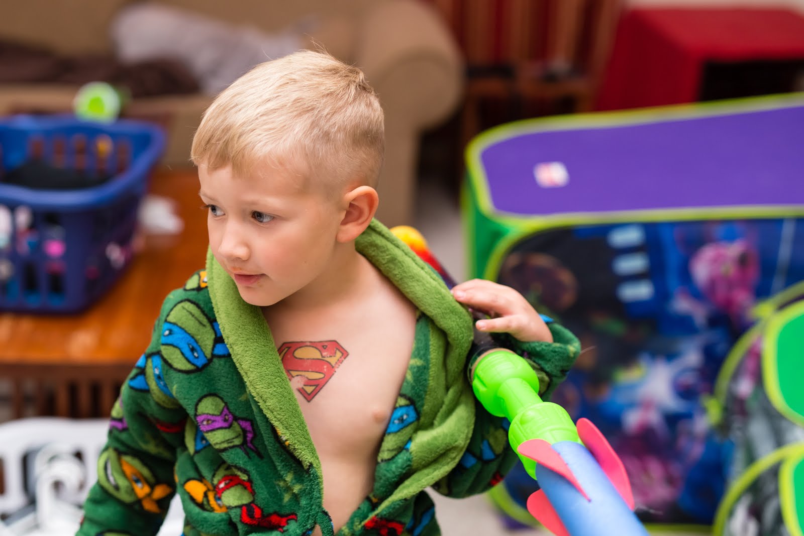 The Superman tattoo is still hanging on. Connor is looking for somethign to shoot his rocket at.
