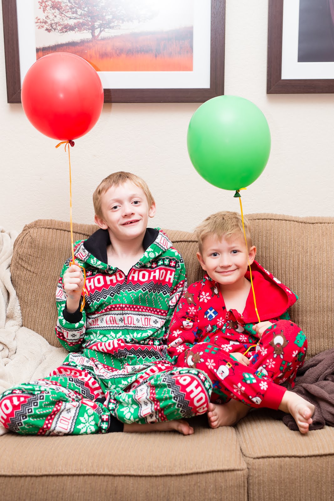 With their balloons from this morning’s dental appointment. They decided to match them with Christmas jammies.