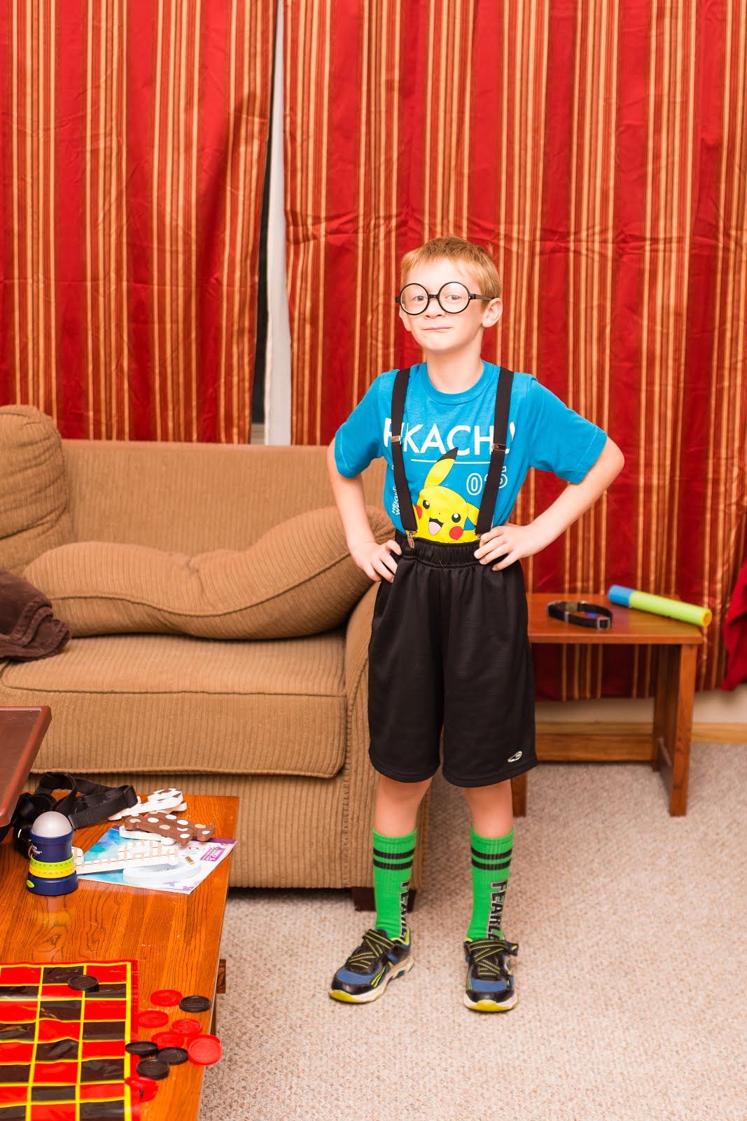 It’s spirit week.  They are dressing like geeks or nerds today.  They are supposed to be smart for not doing drugs. Apparently we are also stereotyping smart people as either having no fashion sense OR not caring what you think about it 🙂