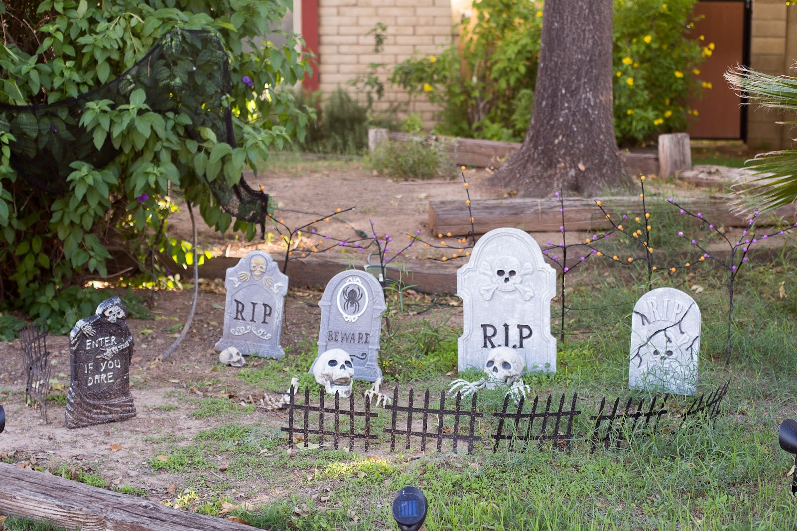Logan’s pumpkin and our graveyard!